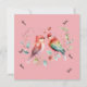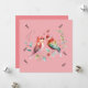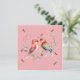 Un bonito y encantador par de aves con tonos rosas y una florida corona verde en el fondo. En el fondo, la palabra "amor" está escrita por todas partes. En el reverso está la frase "te amo a la luna y atrás" Cambia el texto para adaptarlo a tus necesidades.