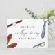 Tarjeta de preguntas del Mejor Hombre. Agregue la redacción de su personalizado a este diseño utilizando los cuadros "Editar esta plantilla de diseño" situados en el lado derecho del elemento, o haga clic en el botón azul "Personalizar" para organizar el texto, cambiar los tipos de letra y los colores, y también agregar información o imágenes adicionales a este diseño. Haga clic en "Personalizar adicional" para abrir opciones completas de edición. Contáctanos para más opciones y elementos coincidentes.