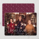 Un sencillo diseño de tarjetas de vacaciones que celebra la gratitud y la unión, con tu foto horizontal o orientada al paisaje favorita. "Juntos es nuestro lugar favorito para ser" aparece como un texto en blanco junto con el nombre de su familia y el año.
