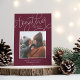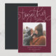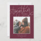 Una simple y sincera tarjeta fotográfica de vacaciones que pone tu foto cuadrada en un rico fondo de ciruela borgoña con un mensaje dulce. "Juntos es nuestro lugar favorito para ser" aparece en escritura blanquecina y en letras en bloques, con tu saludo de vacaciones personalizado, nombre de familia y el año por debajo. Una elección simple y elegante para tus tarjetas Navidades 2021.