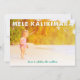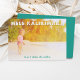 ¡Desee a sus seres queridos Mele Kalikimaka (Feliz Navidad) desde la hermosa Hawái! Perfecto para fotos familiares de sus vacaciones en Hawái, o para los lugareños lo suficientemente afortunados como para vivir la vida en la isla. El diseño sencillo incluye Mele Kalikimaka con letras en bloques blancos, con sus nombres y mensajes en la parte inferior en un guión de estilo tropical turquesa escrito a mano. La carta se transforma en turquesa sólido con dos pequeñas palmeras blancas. La barra de atenuación blanca de la parte inferior ayuda a que el texto se destaque contra la foto y se puede borrar si no es necesario.