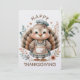 Celebra el Día de Acción de Gracias con una tarjeta de vacaciones de mensaje personalizado. La tarjeta del Día de Acción de Gracias presenta un pavo lindo y elegante en la parte delantera y trasera. Personaliza la tarjeta con tu texto o mensaje deseado. La parte trasera de la tarjeta del Día de Acción de Gracias tiene mucho espacio para tu saludo personal. Lindos colores blanco, beige, marrón y otros tonos terrosos. Envía un mensaje de gratitud y alegría a todos en tu lista. Utiliza la plantilla para crear tu propia tarjeta de vacaciones del Día de Acción de Gracias.