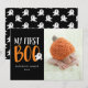 Muestra tu pequeña y celebra su primera Halloween con nuestra tarjeta de fotos Mi primer Boo Halloween. La tarjeta de fotos de Halloween muestra "Mi primer novio" en texto con letras a mano en blanco y naranja con un lindo personalizado fantasma saliendo de una de las cartas. Personalice la tarjeta agregando el nombre de su hijo, el año actual y la foto. El reverso muestra un patrón de fantasma en blanco y negro.