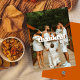 El diseño presenta un texto en negrita moderno que dice "Agradecido" con la plantilla de nombre de familia personalizado en un guión elegante escrito a mano. El vibrante trasero naranja quemado le da un toque cálido y festivo, lo que lo convierte en un lugar perfecto para sus seres queridos.