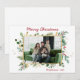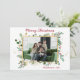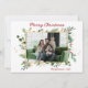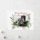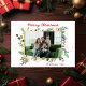 Esta simple tarjeta de vacaciones acuáticas de color verde botánico y bayas fotográficas con tu foto favorita en el centro y las palabras "Feliz Navidad" en un alfabeto moderno de rojo encima de la foto y el nombre de tu familia y el año con el mismo tipo de letra de guión en rojo debajo de la foto es perfecta para enviarle a tus amigos y familia. Su diseño minimalista y clásico es seguro que traerá sonrisas a los rostros de cada destinatario. La parte trasera es un negro a juego.