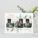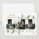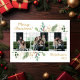 Esta simple tarjeta de vacaciones acuáticas con fotos de color verde botánico y bayas con 3 de tus fotos favoritas en el centro y las palabras "Feliz Navidad" en una letra de escritura moderna en oro encima de la foto y tu nombre de familia y el año en el mismo tipo de letra de guión en oro debajo de la foto es perfecta para mandarla a tus amigos y familia. Su diseño minimalista y clásico es seguro que traerá sonrisas a los rostros de cada destinatario.