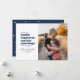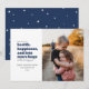 Envía a tus seres queridos alguna esperanza de salud, felicidad y muchos más abrazos en el próximo año con esta única tarjeta de festividad fotográfica. Incluye espacio para una sola foto y un patrón de copos de nieve azul y blanco en la parte posterior.