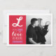 Con el foco principal en la tipografía festiva, esta tarjeta de San Valentín de fotos desea un feliz San Valentín en una frase inteligente, "L es para mucho amor este San Valentín", inspirada en la canción L-O-V-E de Nat King Cole.