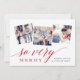 Elegante tarjeta de fotos de vacaciones cuenta con tres fotos cuadradas en un diseño de collage, con "tan alegre" puesto en un vibrante guión rojo arándano y letras en bloques. Personalice el saludo de su personalizado y su(s) nombre(s) a la derecha. Las tarjetas se convierten en un fondo botánico neutro para una estancia minimalista y moderna, pero festiva.