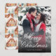 Captura la magia de la temporada navideña con nuestra impresionante tarjeta navideña. El frente muestra una reconfortante foto familiar o de pareja enmarcada por un elegante saludo de "Feliz Navidad", añadiendo un toque de sofisticación atemporal a los saludos de tu temporada. En la parte trasera, una llamativa acuarela con una encantadora casa de jengibre enclavada en la nieve, con hombres juguetones de jengibre, ofrece alegría festiva a todos los que la reciben.