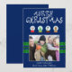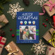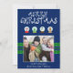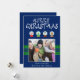 Envíe sus saludos de temporada con estilo con esta tarjeta de foto plana personalizada para Navidades. Con una mezcla festiva de globos de nieve coloridos, tipografía audaz de Feliz Navidad, un patrón clásico de estilo de argyle verde y alegres rayas de puntos de polka azules y blancos, este diseño destaca en cualquier mantel. La parte delantera muestra un fondo azul brillante con espacio para tu foto favorita y nombres de familia, mientras que la parte trasera continúa el fondo azul coordinador para un acabado pulido. Perfecto para tarjetas de vacaciones, saludos familiares de Navidad y celebraciones de invierno, esta tarjeta fotográfica personalizado hace que compartir alegría sea fácil y memorable.
