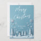 Navidades Pastel Azul Tarjeta Snowman y Snowflake con una escena cubierta de azul pastel con dos hombres de nieve rodeados de pinos blancos y hermosos copos de nieve cayendo. Personalice la tarjeta con el saludo de su personalizado, el nombre de su familia y el año para obtener un toque personal. La parte trasera de la tarjeta muestra tu mensaje más sincero.