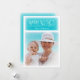 Una preciosa tarjeta de fotos para enviar saludos cálidos desde una soleada localidad. ¡Compensa un retrato de playa a la perfección! Con un efecto suave y nevado dado a los bordes, tu foto está enmarcada con gusto en esta alegre tarjeta fotográfica blanca y azul turquesa.