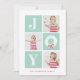 Cuando no puedes elegir solo una, esta tarjeta multifoto es perfecta para mostrar fotos de toda la familia. El formato de foto cuadrada también incluye fotos en Instagram. Este divertido y moderno diseño presenta un sencillo mensaje de alegría con una corona blanca nevada sobre azulejos verdes de menta. El respaldo incluye un amplio patrón rayado y espacio para agregar un mensaje personal o fotos adicionales.