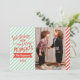Una moderna tarjeta fotográfica de Navidades de vacaciones con rayas azules y rojas y los deseos del feriado escritos en la tipografía de lujo. Personalizar con su propia foto. Añade tu texto.