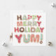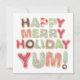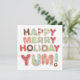 ¡Tarjeta de regalo para los panaderos de vacaciones! Las galletas de Navidades escarchados deletrean Happy, Merry, Holiday, Yum en esta carta perfecta para regalar tu lista con alimentos caseros, dulces y golosinas.