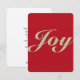 Un saludo de vacaciones sencillo y moderno con un mensaje de alegría navideña. Disponible en una variedad de encantadoras opciones de papel. Este pequeño saludo es personalizable con la elección de texto en la parte posterior de la tarjeta. Haz de esto un saludo muy especial con tu mensaje personal.