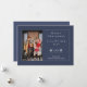 Difunde alegría festiva con nuestra tarjeta fotográfica Blue Minimalista Snowflake Christmas. Este elegante y moderno saludo fotográfico navideño presenta un diseño sencillo adornado con delicados copos de nieve blancos, creando un ambiente sereno para la foto de su familia. Resalta su nombre familiar con una elegante tipografía moderna, acompañada de sentidos saludos navideños que dicen: "Felices Fiestas". Perfecto para aquellos que aprecian una estética refinada y minimalista, esta tarjeta de personalizable ofrece una manera atemporal de compartir la alegría de su temporada con sus seres queridos.