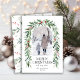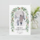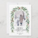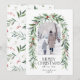 Navidades Mistletoe Foto Tarjeta Rustica De Festividad. Hermosa tarjeta de Navidades con un arco con una foto emparejada con bayas rojas de acuarela pintadas a mano real y una corona de arco verde invernal. Navidades botánicos de hojas y bayas en la parte posterior de la invitación.