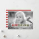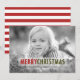 Sencilla tarjeta de fotos de vacaciones de Navidades modernos con diseño de texto en negrita rojo y verde. ELKE CLARKE© Diseño versátil con las palabras "Feliz Navidad" en rojo y verde. Añade tu foto, tu nombre y año, en una tipografía retro y simple tipo de letra de texto, y envía a tu familia y amigos para las vacaciones. Patrón de rayas verdes y blancas en la parte posterior.