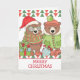Esta es una linda tarjeta de vacaciones plegada que muestra al señor y a la señora Navidades vestidos con su ropa de invierno roja y verde. A sus pies hay un paquete de regalo envuelto de forma brillante, un bastón de caramelo y una bombilla de árbol. El texto está en rojo coincidente en la parte inferior, y un divertido borde geométrico retro agrega interés. En el interior de la tarjeta hay dos campos de texto más en rojo y verde para que el personalizar lo haga. ¡Haz que diga lo que quieras!