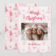 Los pinos Navidades rosados en un patrón de acuarela vintage es un patrón encantador con copos de nieve cayendo en un maravilloso paisaje invernal. Feliz Navidad! Todo el script rosa es texto editable. Asegúrese de reemplazar la foto de la familia de ejemplo con la suya propia y cambiar el nombre y el año de ejemplo.