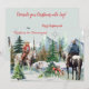Navidades Eve Shenanigans con tarjeta Aussies. Cortar un árbol de Navidad en la víspera de los Navidades es una tradición para muchos. Este vaquero y vaquera a caballo lleva a sus perros pastores australianos al campo trasero y a los bosques para elegir el mejor árbol de Navidad. ¡Los perros tienen su propia idea de ayudar! Agradable, divertido, nostálgico, divertido en invierno en la nieve con la Estrella de Belén brillando en los cielos sobre las montañas. "¡Decoren a sus Navidades con alegría!" ¡Feliz Navidad y feliz año nuevo!" Personaliza con tu propio nombre familiar o borra y agrega tus propios escritos personales.