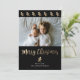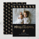 Un diseño elegante y con clase para una foto ofrece un saludo "de las Felices Navidad" del efecto metalizado de oro con un hombre de pan de jengibre del efecto metalizado de oro. La parte trasera ofrece un fondo negro con los hombres de pan de jengibre del modelo del efecto metalizado de oro. Este diseño es editable y se puede modificar para requisitos particulares en línea.