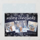 La moderna y festiva tarjeta fotográfica navideña cuenta con tres fotos cuadradas en un diseño de collage sobre un fondo azul de medianoche, con un borde superior e inferior de copos de nieve cayendo y "Feliz Navidad" a través de la tipografía esbozada a mano. Personalice con sus nombres y el año en la parte inferior derecha.