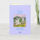 Dos conejos del dibujo animado están hacia fuera para un paseo en el parque con algunos nuevos amigos que resolvieron quién acaba de tramar en un día de primavera justo antes de Pascua. Son seis polluelos lindos del dibujo animado. El frente lee: "Pascua es un gran rato para resolver interior de los polluelos": "Ningún bollo previsto". ¡Pascua feliz!