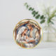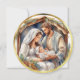 Esta tarjeta de Navidades redondeada presenta una escena de natividad rodeada por un falso borde dorado. La espalda tiene un saludo que dice "QUE EL MILAGRO DE LOS NAVIDADES LLENE EL CORAZÓN CON MARAVILLA Y ALEGRÍA". Puedes personalizar con tu(s) apellido(s) y cambiar el saludo si lo prefieres.
