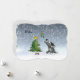 Un lindo perro solitario cantando en la nieve con una linda estrella de árbol trenzado y hueso de perro de caña de caramelo, haciendo música. Dice "No"... Luego en la parte de atrás están los 17 perros de dibujos animados de nariz mojada de Navidades que cantan aullidos para las vacaciones en plena luna, sobre una capa de tela de lino y una huella de pata de corazón rojo. El texto dice:"...una Noche silenciosa". "Feliz cumpleaños"... (o cambio a Merry Chrismutts). Se puede personalizar toda la tarjeta. Algunas de las lindas razas de perros que se retratan incluyen una cresta china, un terrateniente mocoso, un beagle, un afgano, un espátula de coqueteros, un pug, un papillón y algunas razas mixtas. En el fondo hay un pequeño árbol de Navidad. ¡FELIZ HOWLIDAYS PARA TI!
