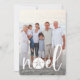 La tarjeta de vacaciones de estilo costero de moda añade un toque de playa a tus saludos navideños. Perfecto para compartir una foto de vacaciones, o para familias que viven en lugares costeros, tropicales, cálidos o de la isla, este elegante diseño presenta su foto favorita vertical o orientada a retratos con "noel" colgado de letras blancas y un dólar de arena tomando el lugar de la letra "o". Añada el mensaje de vacaciones de su personalizado y sus nombres o apellidos, junto con otras tres fotos y un mensaje de personalizado en la parte posterior.