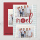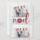La tarjeta de vacaciones de estilo costero de moda añade un toque de playa a tus saludos navideños. Perfecto para compartir fotos de vacaciones, o para familias que viven en lugares costeros, tropicales, cálidos o de la isla, este desenfadado diseño presenta dos fotos favoritas en un fondo de sutil rayas con "noel" en el centro en rojo festivo. Un dólar de arena reemplaza la letra "o" por un toque costero adorable. Añada el mensaje de vacaciones de su personalizado y sus nombres o apellidos, junto con un mensaje de foto y personalizado adicional en la parte posterior.