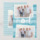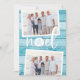 La tarjeta de vacaciones de estilo costero de moda añade un toque de playa a tus saludos navideños. Perfecto para compartir fotos de vacaciones, o para familias que viven en lugares costeros, tropicales, cálidos o de la isla, este desenfadado diseño cuenta con dos fotos favoritas sobre un fondo de madera turquesa en la playa con "noel" en el centro. Un dólar de arena reemplaza la letra "o" por un toque costero adorable. Añada el mensaje de vacaciones de su personalizado y sus nombres o apellidos, junto con un mensaje de foto y personalizado adicional en la parte posterior.