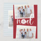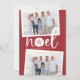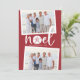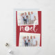 La tarjeta de vacaciones de estilo costero de moda añade un toque de playa a tus saludos navideños. Perfecto para compartir fotos de vacaciones, o para familias que viven en lugares costeros, tropicales, cálidos o de la isla, este desenfadado diseño cuenta con dos fotos favoritas en un fondo rojo festivo con "noel" en el centro. Un dólar de arena reemplaza la letra "o" por un toque costero adorable. Añada el mensaje de vacaciones de su personalizado y sus nombres o apellidos, junto con un mensaje de foto y personalizado adicional en la parte posterior.