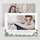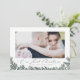 Celebra tu primera Navidad como recién casados con esta elegante tarjeta navideña con 2 fotos junto con la frase "Nuestra primera Navidad" acentuada con vegetación dibujada a mano. Perfecto invitación boda en Navidades para compartir sus fotos y saludos de vacaciones!