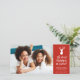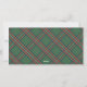 Esta elegante tarjeta de vacaciones presenta una silueta de cabeza de ciervo blanca sobre un fondo rojo y las palabras, "¡Oh, Ciervo! ¡La Navidad ha llegado!". La parte trasera de la tarjeta cuenta con un patrón de cuadros escoceses en verde, rojo, azul, amarillo, plata y blanco.