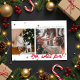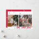 Tarjeta de foto de vacaciones planas modernas y minimalistas con dos ranuras para fotos descentradas con puntos de confeti de colores navideños (tonos de rojo y verde) esparcidos en la parte superior e inferior. La frase "¡OH, qué divertido!" se sienta audazmente en la parte inferior izquierda. La esquina superior derecha tiene un cuadro de texto editable para tu propio saludo de vacaciones, nombre y año. La parte delantera de la tarjeta tiene un fondo blanco. La parte posterior de la tarjeta tiene un fondo rojo con más puntos de confeti esparcidos.