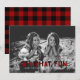 Esta divertida tarjeta de Navidades fotográficos individuales presenta una foto única con una sola imagen con "oh qué divertido" en una estampada de búfalo rojo y copos de nieve dibujados a mano. La parte posterior de la tarjeta tiene un patrón de manto de búfalo rojo que coincide.
