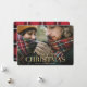 Efecto de oro nuestra primera tarjeta de fotos de chapa roja de navidad. El navidad perfecto / tarjeta de vacaciones y tarjeta de invitación boda.