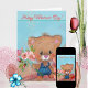 Hermoso tarjeta del Día de San Valentín que puedes dar a tu novia, esposa o amante. Cuenta con un osito de peluche con hermosas flores y un corazón rosa y la parte trasera de la tarjeta tiene algunos corazones. Puedes cambiar el texto de la parte inferior delantera y el nombre y el texto dentro de la tarjeta. Puedes imprimirlo o descargarlo y enviarlo electrónicamente. Esta tarjeta es perfecta para personas enamoradas o para que los niños le den una tarjeta de San Valentín a su maestro. ¡Feliz Día de San Valentín!