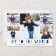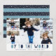 La fantástica tarjeta de fotos de Hanukkah muestra cinco de tus fotos familiares favoritas en un collage "Oy to the World" aparece debajo de la letra azul recortada. Personalice con su nombre o apellidos, el saludo de personalizados y el año a lo largo de la parte inferior. Las tarjetas cambian a un patrón de nieve blanca con rayas azules. Una tarjeta Hanukkah divertida y moderna diseñada para añadir alegría desenfadada a tus envíos de vacaciones.