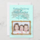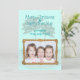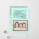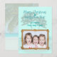 Las palmeras tropicales tarjeta de Navidad plana con texto personalizado y marco de cuerda. Los colores azul claro y verde verde azulado con sombra de texto para las dos líneas de saludo, "Feliz Navidad y Feliz Año Nuevo" pueden ser cambiados. Añade una firma y sube una foto horizontal de los niños, familia, mascota, etc. dentro de un marco de cuerda nublada. Al revés también hay una imagen de palmera de playa.
