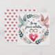 Celebre el amor y el compromiso con esta encantadora tarjeta que presenta dos palomas elegantes, anillos de boda entrelazados en un corazón y rodeados de una delicada corona floral. Perfecta para el Día de San Valentín, compromisos, aniversarios o propuestas, este diseño captura la esencia eterna del romance y la devoción.