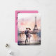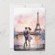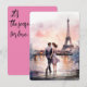 La temporada del amor... una pareja camina románticamente en París con la torre Eiffel en la distancia