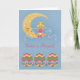 Pascua es tarjeta mágica, es un diseño de una niña ilustrada sentada en una luna amistosa con hilos de plata fluyendo de sus manos. La parte inferior de la tarjeta tiene tres huevos de Pascua gigantes y flores. Dulce tarjeta para regalar a alguien que tiene una hija celebrando su primera Pascua. Gracias al hungryjpeg por algunos de los elementos del diseño.