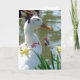 Pato Blanco En Daffodils Feliz Tarjeta De Pascua. El pato blanco cálido se adentra en las aguas con los bonitos. Un día perfecto junto al lago. El sol brilla en el agua y calienta los patos hacia atrás. Lugar alegre, feliz y relajante para disfrutar en Pascua. La parte delantera de la tarjeta es la fotografía del pato en daffodils cerca del lago. En el interior, las palabras dicen "Feliz Pascua". (Personalizable)