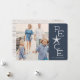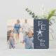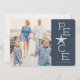 La tarjeta fotográfica de vacaciones en la playa con un toque rústico muestra tu foto favorita con "paz" junto con letras blancas en un fondo azul del puerto. Una estrella de mar ocupa el lugar de la letra "A" para un bonito toque costero. Personalice con sus nombres debajo y agregue dos fotos adicionales y un mensaje personal al reverso si lo desea.