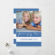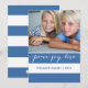 Envíe sus saludos del día de fiesta a la familia y a los amigos con esta tarjeta versátil, intrépida, moderna de la foto del día de fiesta con las palabras "paz, alegría, amor" escrito en una fuente blanca de la escritura en modelo rayado intrépido. Diseñe por ELKE CLARKE© PARA MONOGRAMGALLERY. Substituya la foto de la muestra por sus la propia. El fondo rayado azul y blanco de muy buen gusto encendido apoya de tarjeta. Otro colorea en tienda o a petición disponible.